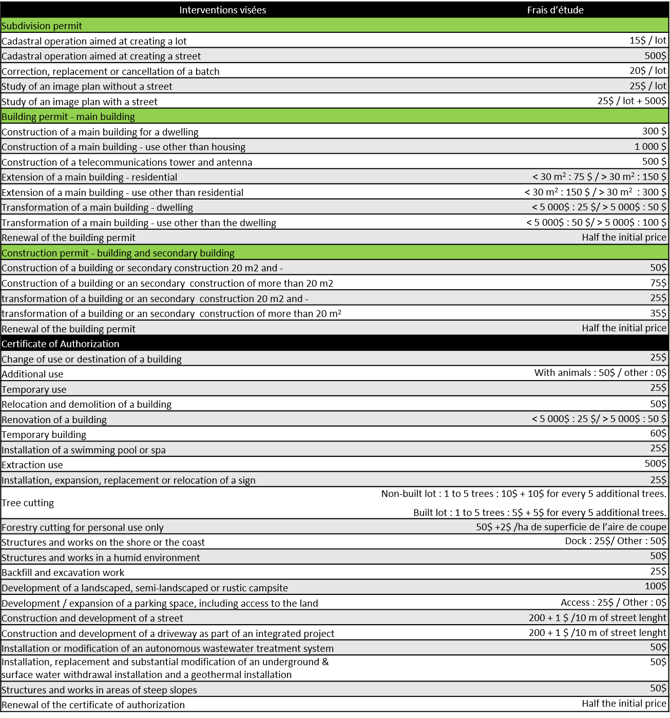 Requests for permits and certificates of authorization must be made by supplying the completed Permit application form and the appropriate documents and information and making an appointment with the municipal inspector.