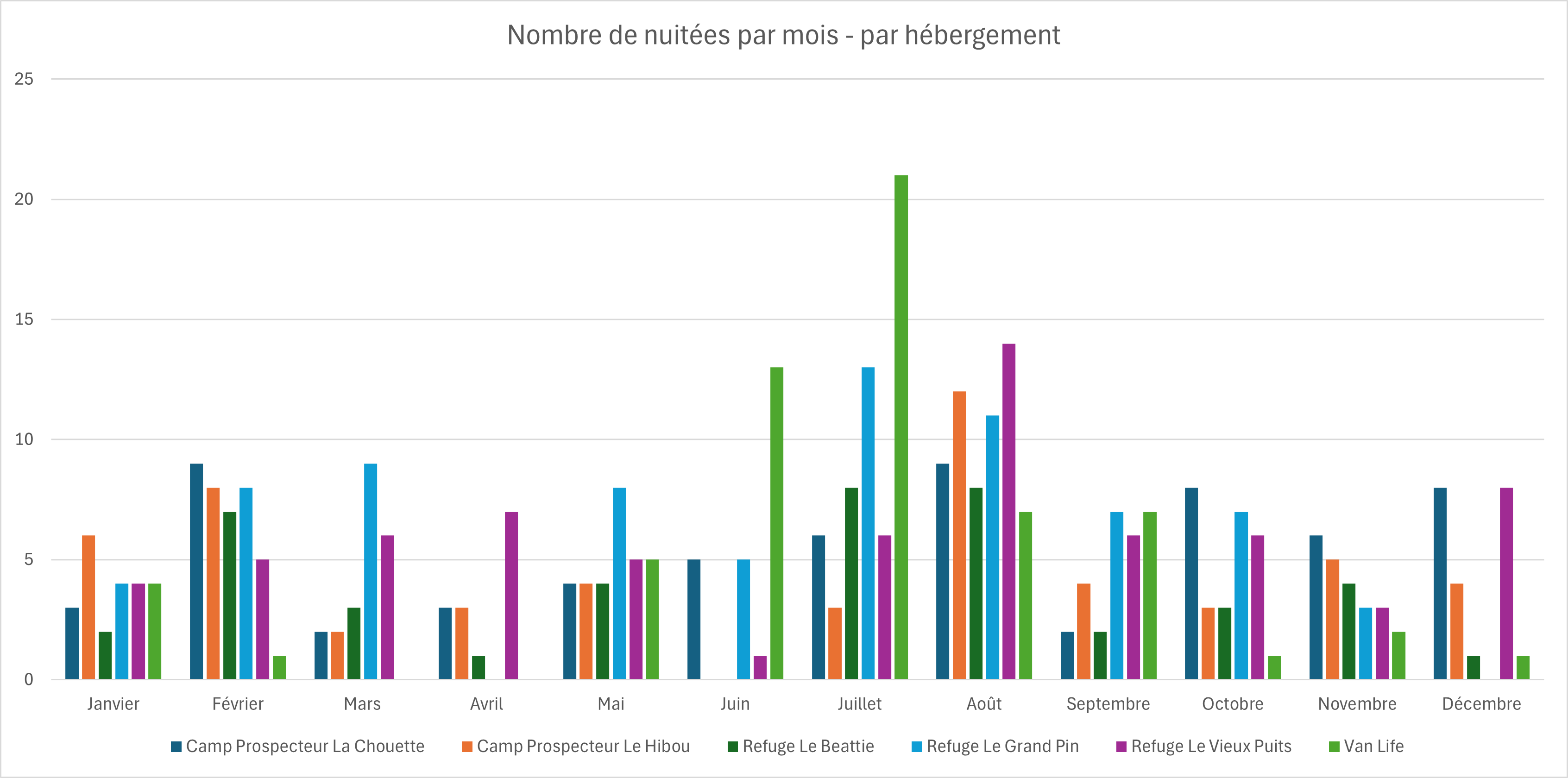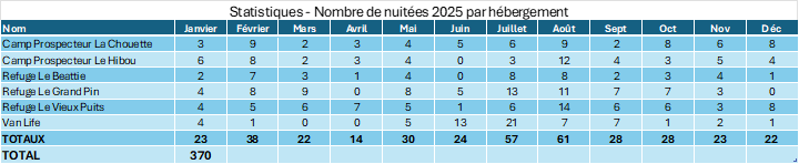 In 2025, 370 nights stays were booked at the park, in comparaison to 205 in 2024.