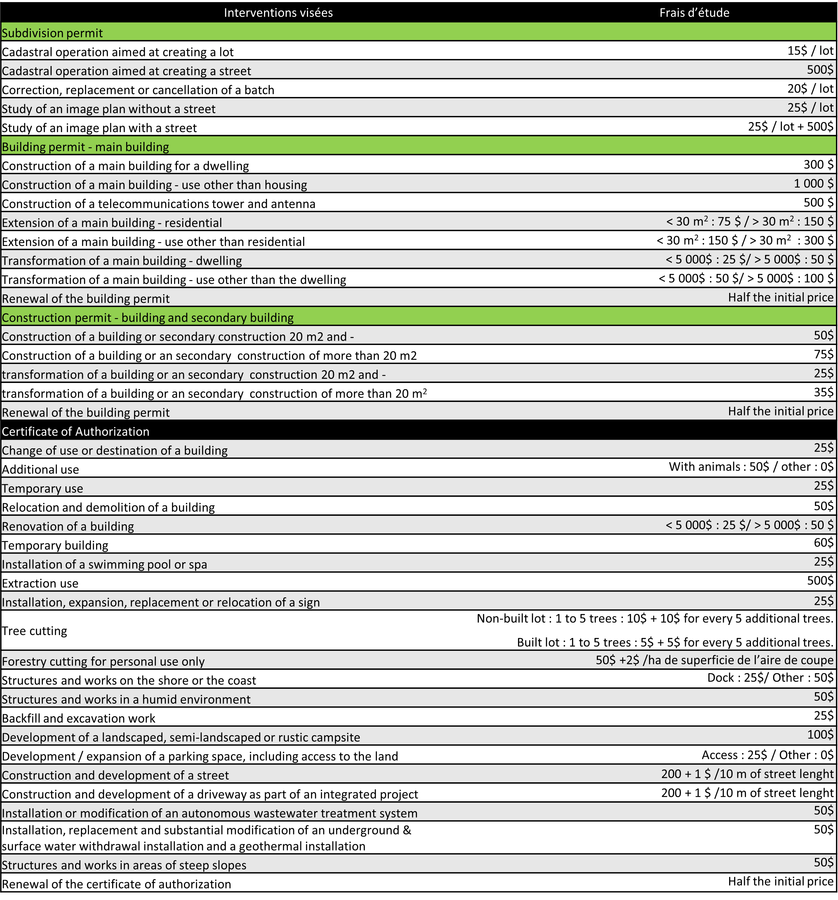 Requests for permits and certificates of authorization must be made by supplying the completed Permit form and the appropriate documents and information and making an appointment with the municipal inspector.