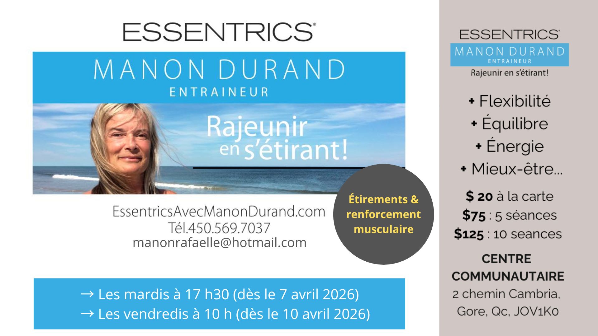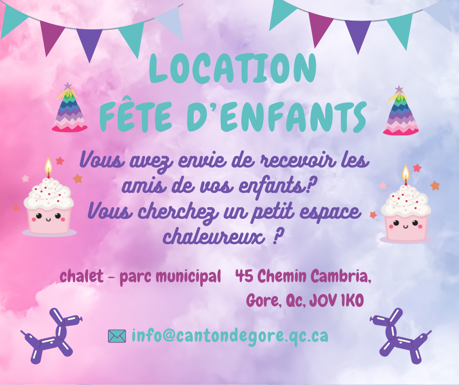 Pour réserver : ccharette@cantondegore.qc.ca ou (450) 562-2025 p. 3530